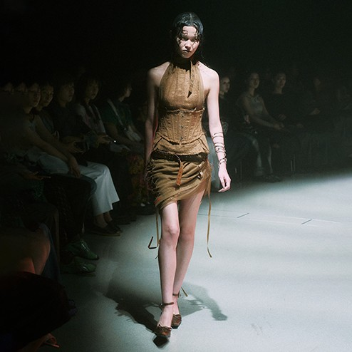Mukcyen is a coined word derived from the Chinese pronunciation of the designer’s surname, mucun. Intentionally abstract and devoid of fixed meaning, it carries a quiet conviction: to imbue the name with singular significance through the creation of a personal history and culture. The brand turns its gaze toward the complexity of human nature and the fluidity of time— toward a longing for death that paradoxically arises from a deep belief in the force of life. By weaving in elements from cult cinema and literature, it constructs a unique image of humanity. This image emerges as garments that seek, reflect, and share the shifting forms of human connection.