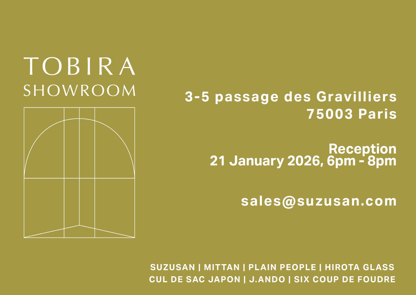 SUZUSAN - MITTAN - PLAIN PEOPLE - J.ANDO JEWELRY - SIX COUP DE FOUDRE - HIROTA GLASS - CUL DE SAC JAPON