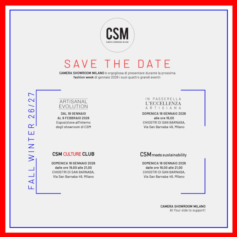 CSM (Camera Showroom Milano) is an autonomous, independent, and apolitical association. Dedicated to the most representative multibrand showrooms in Milan in the field of fashion and with a strong international vocation.