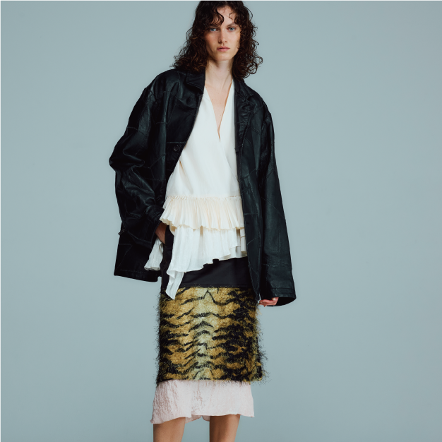 A collection that blends the essence and ingenuity of tailoring with men's military style, or pairs contrasting elements like sensual moods with modern cutting. Just as different sounds harmonize to weave a song, diverse tastes, techniques, and cultural backgrounds cross boundaries to create a unique style. To unleash the true self, or the self yet to be seen—we aspire to be an anthem celebrating individuality.
